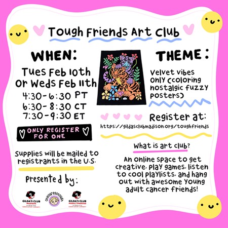 Tough Friends Art Club for Young Adults (Feb 10, 2026) Location: Virtual - assigned links